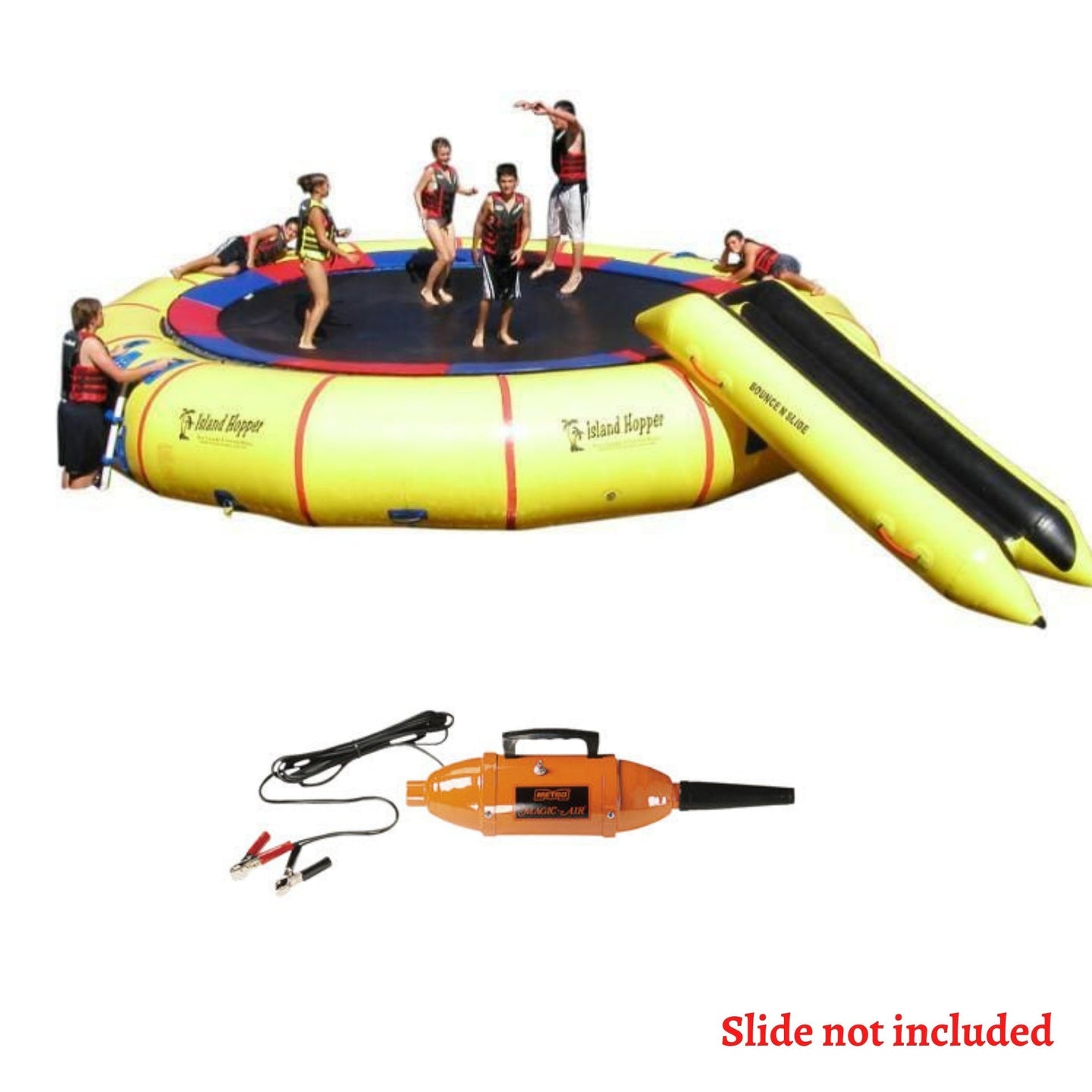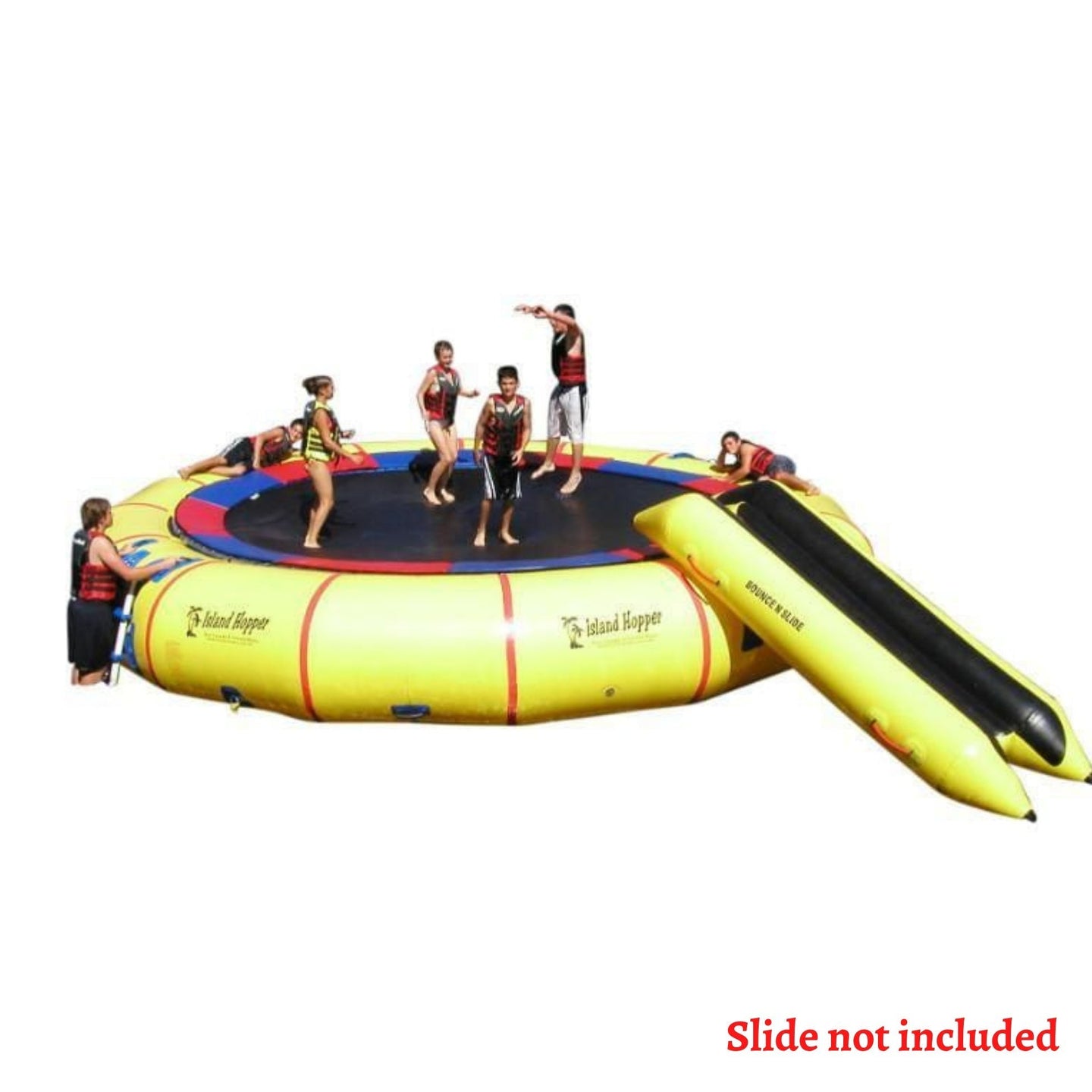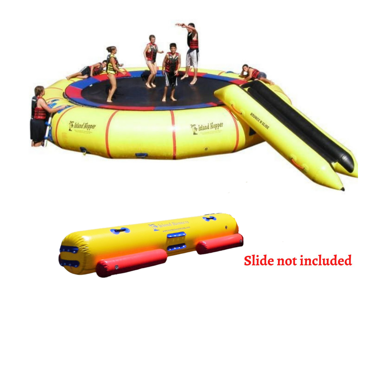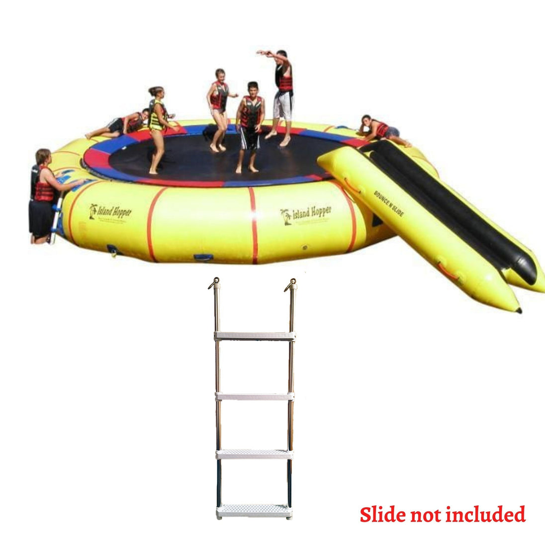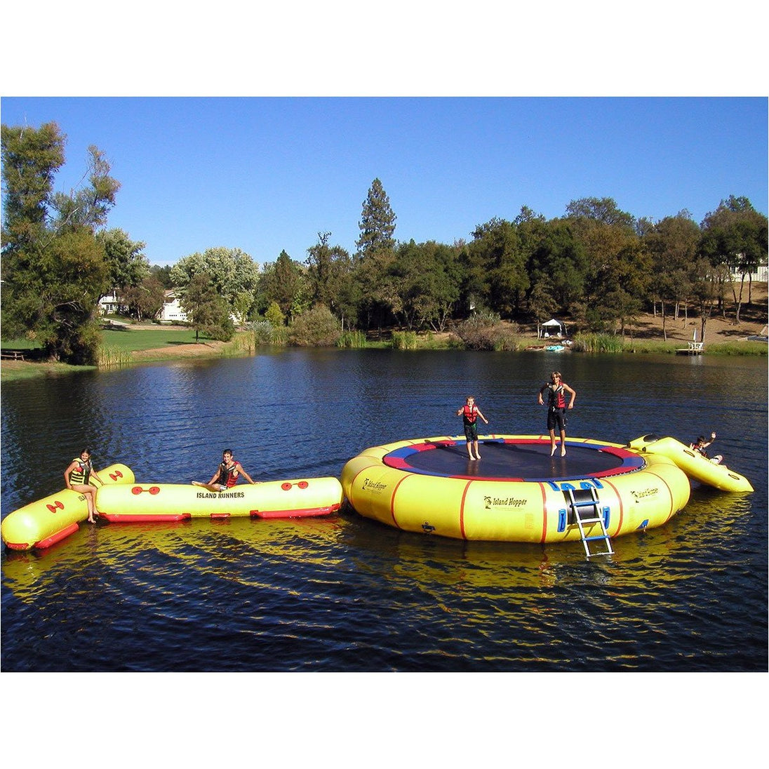 Island Hopper water trampolines feature super galvanized steel frame sections that bolt together for maximum strength and safety.